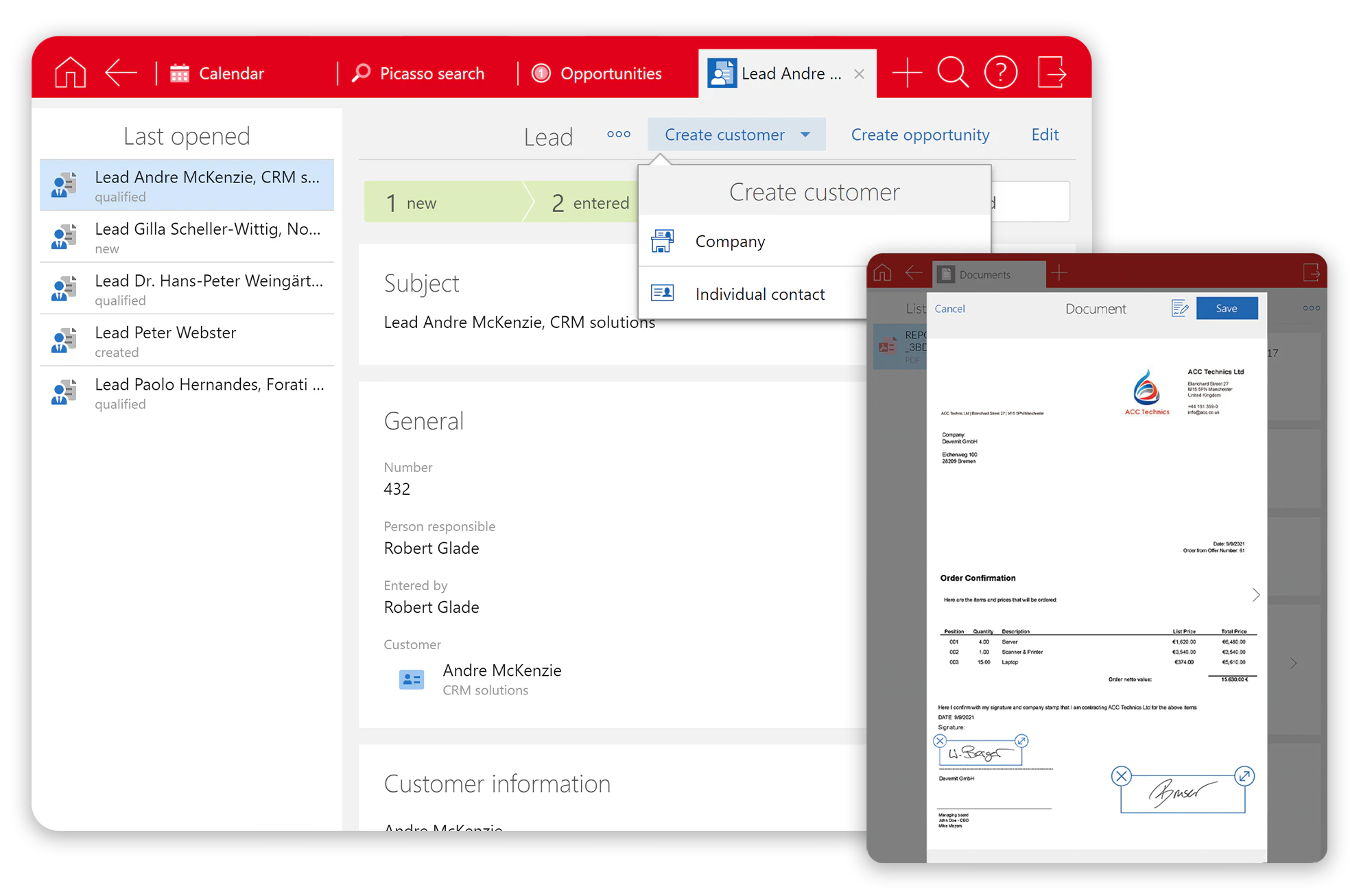 SmartWe centralizează toate informațiile relevante despre clienți, documente, apeluri și oportunități de vânzare într-un singur loc, accesibil de pe orice dispozitiv. Asistenții inteligenți, precum Picasso Search, simplifică fluxul de lucru prin sugestii personalizate, iar integrarea oportunităților în CRM oferă o vizualizare clară a etapelor și progresului vânzărilor.