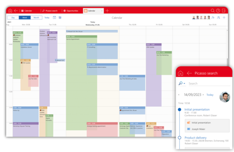 MyDay widget oferă o privire de ansamblu asupra zilei de lucru, afișând clar programul și reamintind utilizatorului de întâlniri importante. Totodată, pune la dispoziție documente relevante, precum oferte sau reclamații active, pentru ca acesta să aibă toate informațiile necesare la îndemână, în orice moment, chiar și de pe dispozitive mobile.