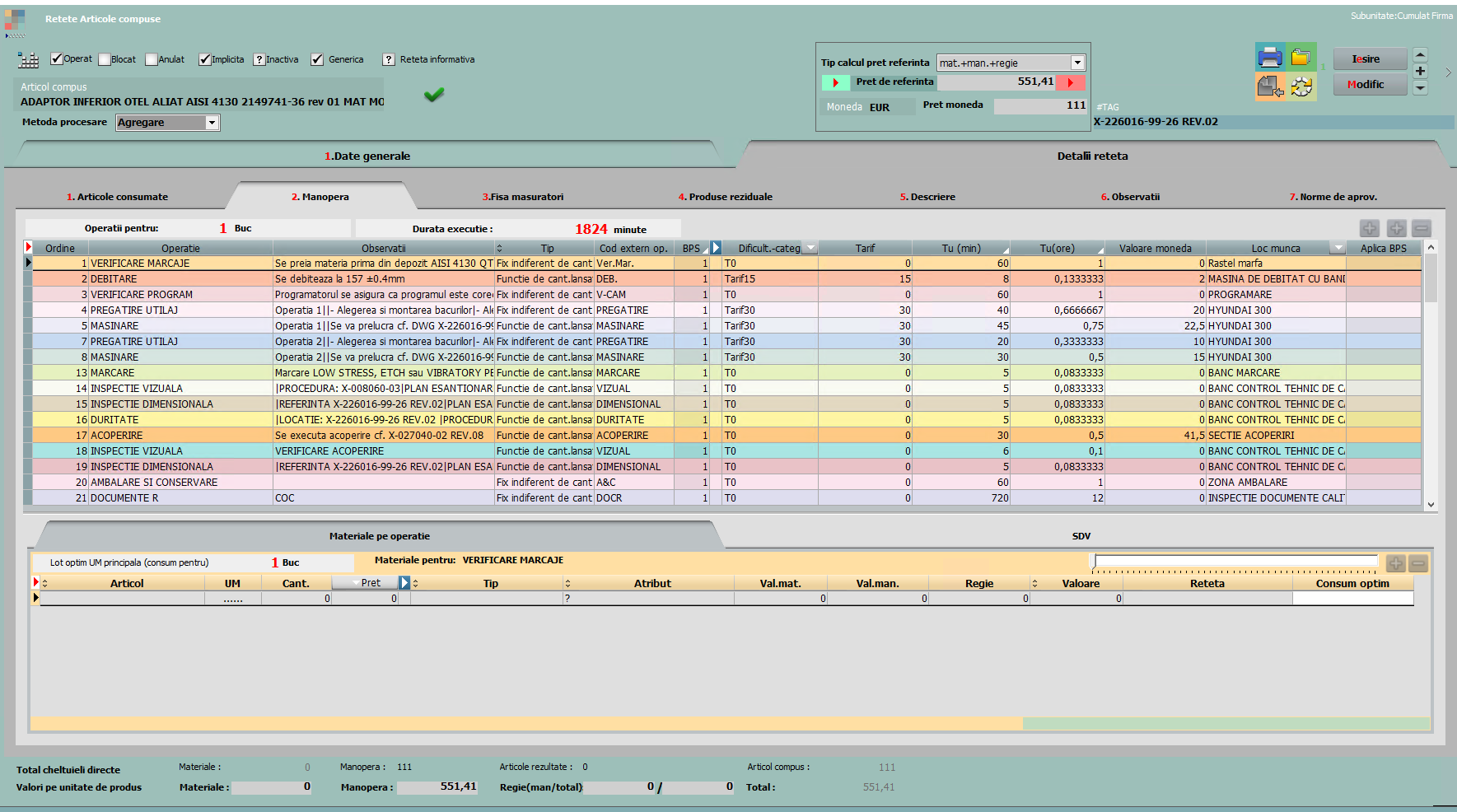Include funcționalități avansate de planificare, urmărire și optimizare a resurselor. Permite lansări în producție după diverse scenarii, gestionarea consumului de materiale și predărilor din producție.
