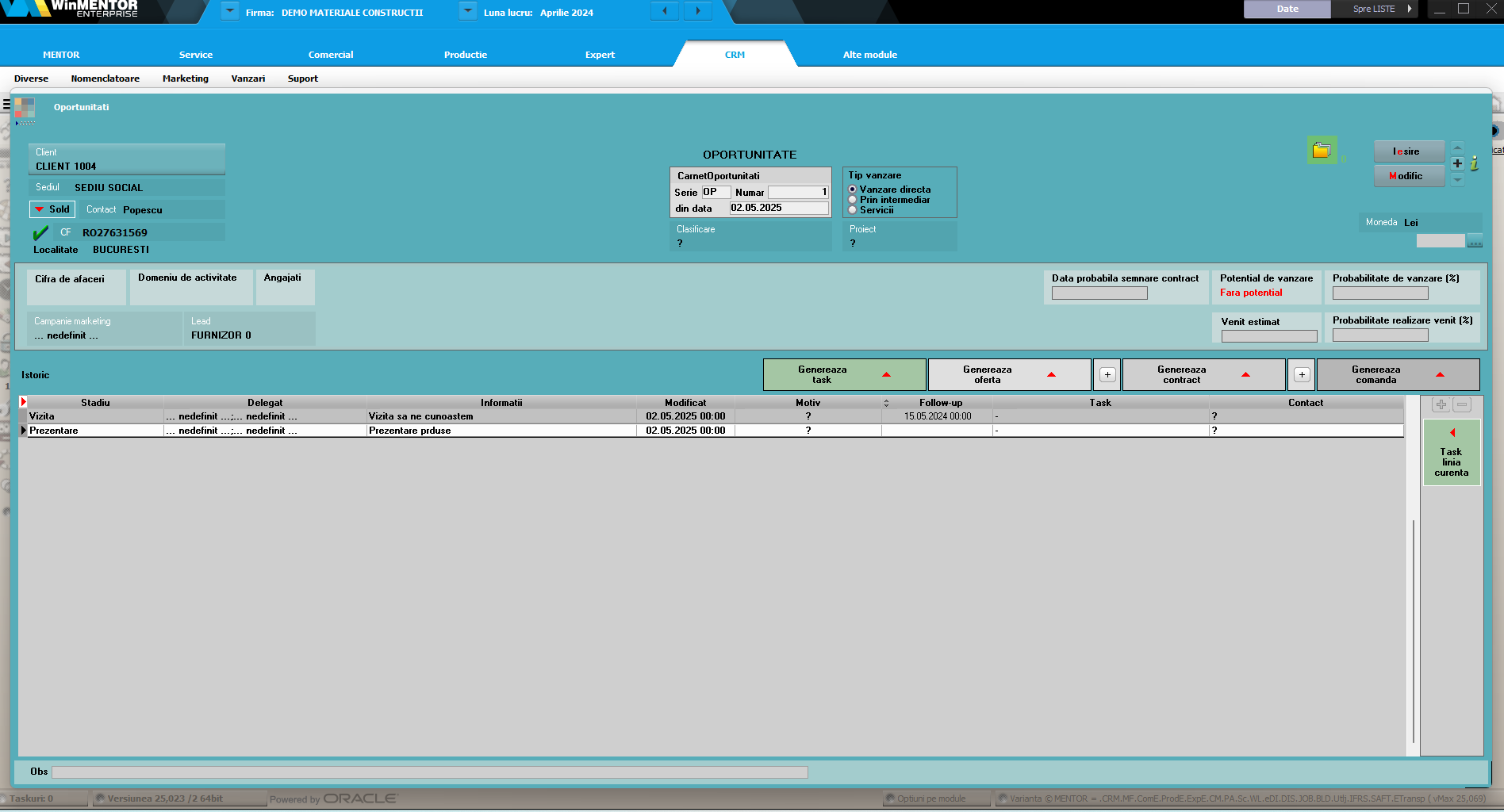 Automatizează procesul de vânzare prin gestionarea etapelor de negociere și generarea documentelor necesare din oportunități.