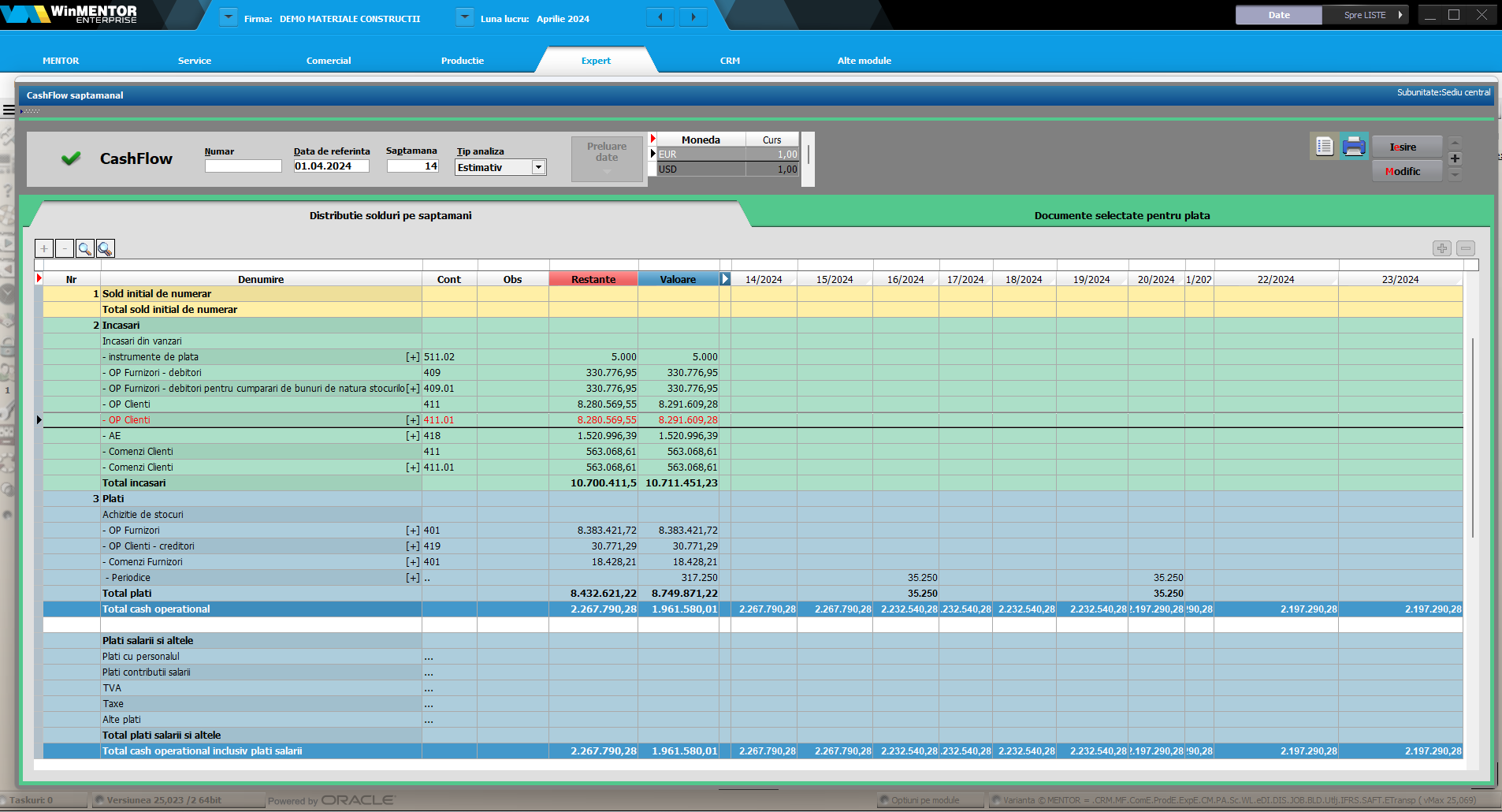Oferă flexibilitate în analiza lichidităților prin două tipuri de cash-flow: operațional și săptămânal, utilizabile separat sau combinat.
